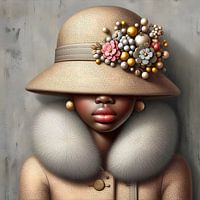 De kleuren en subtiele structuren zorgen voor een bijzonder mooie uitstraling van de fijne stoffen van haar jas, hoed en kraag. Het is een dame met smaak en stijl!