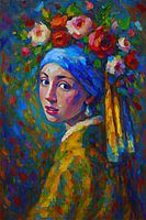 Koop dit bloemen kunstwerk Het meisje met de parel schilderij van Johannes als print op canvas, aluminium dibond, (ingelijste) fotoprint, behang en ArtFrame. Voor jou op maat geprint in Fine-Art kwaliteit.
