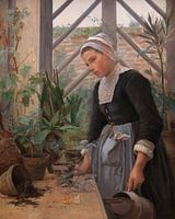 Bretonse Meisje dat voor planten zorgt in de kas, Anna Petersen