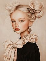 Modern portret in zachte tinten van een meisje met een vlinder. Een bijzondere blikvanger voor je interieur! Kies zelf het formaat en materiaal bij dit werk en maak het helemaal naar wens.