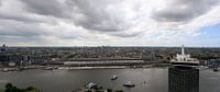 Vanaf een hoog punt van een in aanbouw zijnde gebouw aan de noordzijde van het IJ toont dit werk een fantastisch panoramisch zicht op een groot gedeelte van de stad Amsterdam. Rechts op de voorgrond is de ADAM toren te zien. De toren heeft op het dak een schommel die buiten het dak schommelt! Menig toerist heeft er al doodsangsten uitgestaan. Over het water van het IJ is het Centraal station te zien, met zijn overkapping waar met grote letters AMSTERDAM op staat. Op het water varen de ponten van het openbare vervoer. Boven de stad hangt een machtige wolkenpartij. Dit werk is zowel in kleur als in zwart-wit te bestellen.