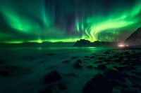 Deze foto is genomen aan het strand van Utakleiv (Lofoten, Noorwegen). Een koude, maar prachtige nacht!