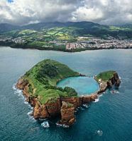 Luchtfoto van "het oog" van de Azoren, Franca do Campo