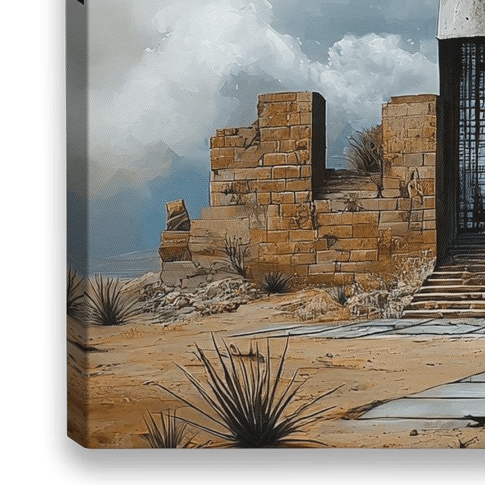 Koop dit landschapskunstwerk Het oog van de ruïnes van Klaus Tesching - Art-AI als print op canvas, aluminium dibond, (ingelijste) fotoprint, behang en ArtFrame. Voor jou op maat geprint in Fine-Art kwaliteit.