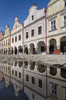 De oude huizen in Italiaanse Renaissance stijl in Telc, Zuid Tjechie. Dit is de hoofdstraat in Telc.