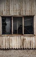 De structuur van de geverfde planken en de verroeste ruit geven iets minimalistische en ook wat van een straatfoto.