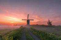 Pad naar de molen, gefotografeerd bij de Broekmolen te Streefkerk (Zuid-Holland, Nederland) tijdens een mooie morgen. De zon kwam net boven de horizon. De lucht werd in een mooie gloed gezet!
