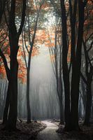 De herfst is in aantocht. Langzaam verdwijnt het groen om plaats te maken voor rood en oranje. Nevel en mist hangen tussen de bomen in het bos...