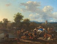 Koop Het ponteveer, Nicolaes Pietersz. Berchem als reproductie op canvas, aluminium dibond, (ingelijste) fotoprint, behang en ArtFrame, op maat geprint in Fine-Art kwaliteit.