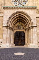 Koop de foto Het portaal van de Matthiaskerk van Roland Brack op canvas, aluminium dibond, (ingelijste) fotoprint, behang en ArtFrame, op maat geprint in Fine-Art kwaliteit.