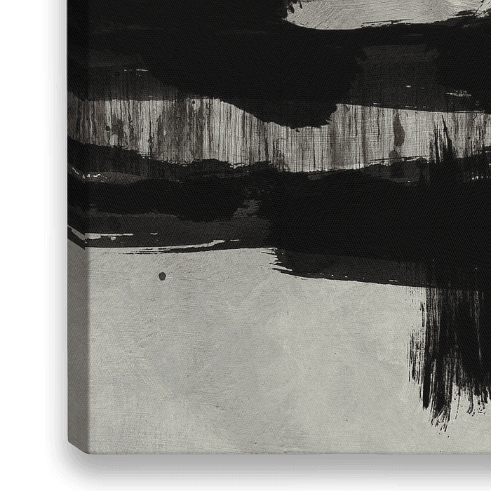 Krachtig abstract werk bestaande uit grote zwarte penseelstreken.