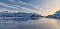 Het prachtige landschap van Noorwegen gefotografeerd tijdens een cruise door de noordse fjorden. Met mooie luchten en een winterse omgeving.