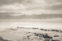 Schitterende luchten en eindeloze vergezichten. In weer en wind, verstopt tussen de wolken, reflecterend op een spiegelende Waddenzee, een nooit vervelend landschap. Zo zou je deze foto kunnen beschrijven. De stenen welke je op de voorgrond van de foto ziet, verdwijnen als het ware in de zee. De foto is uitgevoerd in grijstinten voor…