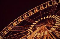 Nachtfoto genomen onder het reuzenrad van Lyon, dat in de wintermaanden op de Place Bellecour in het stadscentrum staat.