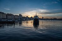 Een groot schip komt aan in de Haven van Marseille, Frankrijk.