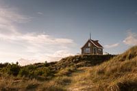 Nabij Terschelling-Weste staat dit huisje in de duinen. Het valt meteen op. Het huisje is gebouwd op de fundering van bunkers uit de tweede wereldoorlog. Het is in de koude oorlog gebruikt om onderzeeërs in de gaten te houden. Nu kan het gehuurd worden om in te slapen. De foto is gemaakt in augustus 2023
