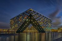 Dit is het sluishuis op IJburg in Amsterdam vroeg in de avond.