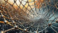In een unieke symbiose van menselijke creativiteit en de grenzeloze verbeeldingskracht van kunstmatige intelligentie, ontvouwt zich een surrealistisch meesterwerk voor onze ogen. Een spinnenweb van metalen draden strekt zich uit als een delicate dans van technologische finesse, waar goud en geel samensmelten in een hypnotiserende symfonie van kleur. Elk draadje, zorgvuldig geweven door de digitale handen van AI, vormt een eindeloos fijnmazig netwerk dat de grenzen tussen realiteit en verbeelding doet vervagen.
