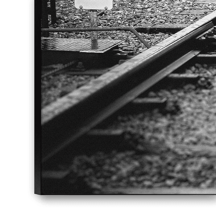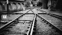 Deze mooie spoorweg foto is gemaakt in oude stijl zwartwit kleur. Op een mooie witte achtergrond komt deze foto het beste tot zijn recht.