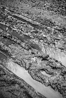 Natte klei als in een tekening van Escher weerspiegelt de winterse kouden lucht. Verbranden Pan Bergen aan Zee.