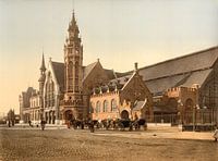 Koop de foto Het station, Brugge, België (1890-1900) van Vintage Afbeeldingen op canvas, aluminium dibond, (ingelijste) fotoprint, behang en ArtFrame, op maat geprint in Fine-Art kwaliteit.