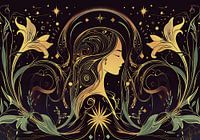 Koop dit digital art kunstwerk Het sterrenbeeld Maagd "Maagd in de pracht van de sterren: een kosmisch wonder" van Niklas Maximilian als reproductie op canvas, aluminium dibond, (ingelijste) fotoprint, behang en ArtFrame, op maat geprint in Fine-Art kwaliteit.