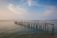 Het strand en de pier van Bophut in de schemering, Koh samui, Thailand