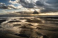 Ondergaande zon op het strand van Westenschouwen, Zeeland