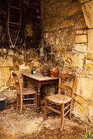 Een soort oud terrasje in Frankrijk, je kunt zo aanschuiven maar het ziet er naar uit dat het al een tijdje geleden is dat hier iemand heeft gezeten.