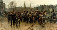 In de tweede helft van de 19de eeuw vertrekken ruim 70.000 militairen van het Koninklijk Nederlandsch-Indisch Leger naar Nederlands-Indië. Deze lichting KNIL-militairen loopt over de Koningsbrug in Rotterdam om zich in te schepen voor de reis. De vrouw met het kind aan de hand die afscheid neemt van haar man verleent de voorstelling wel dramatiek, maar toch gaat het Isaac Israels meer om een objectieve weergave dan om een gevoel los te maken.
