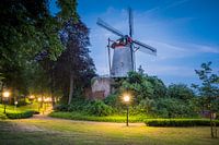 De zon is onder en de straatlantaarns zijn alweer aan in het centrum van Rhenen. De binnenmolen pakt nog het laatste beetje licht voordat het echt donker wordt.