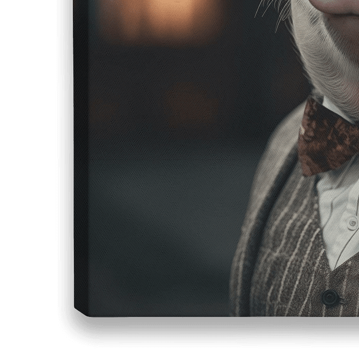 De foto toont een machtig varken in een elegant pak en hoed, gekleed als de peetvader. Het varken heeft een zelfverzekerde uitdrukking en staat trots. De afbeelding is in echte fotostijl, met een hoge resolutie en veel detail, evenals een filmische textuur. De belichting ziet er filmisch uit en geeft de foto een speciale sfeer. De hoek…