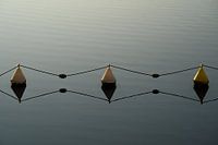 Op de Spuikom in Oostende wordt het stuk dicht bij het sas afgebakend door drijvers verbonden met een koord . Dit voorkomt dat watersporters te dicht bij de gevaarlijke sluisdeuren komen .