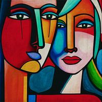 Dit werk in een figuratieve en expressionistische stijl geschilderd in acrylverf heeft als onderwerp de relatie tussen twee of meer mensen. Ik heb bewust de expressionistische meesters goed bestudeerd en geprobeerd de veelzijdigheid van alle kanten van een gezicht op een gestileerde manier weer te geven. Ik heb ook geprobeerd de spanning tussen mensen weer te geven, want hoe je het ook bekijkt, er is altijd een soort spanning aanwezig in een realiteit; dit in de goede en in de slechte zin van het woord. Beschouw dit werk als een spiegel van je eigen relatie.