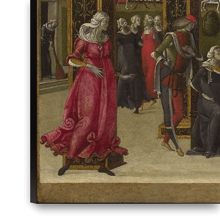 Dit schilderij is het derde deel van een reeks werken die het laatste verhaal van Boccaccio's 'Decameron' illustreren. Mogelijk zijn ze in de lambrisering van een kamer gelaten.