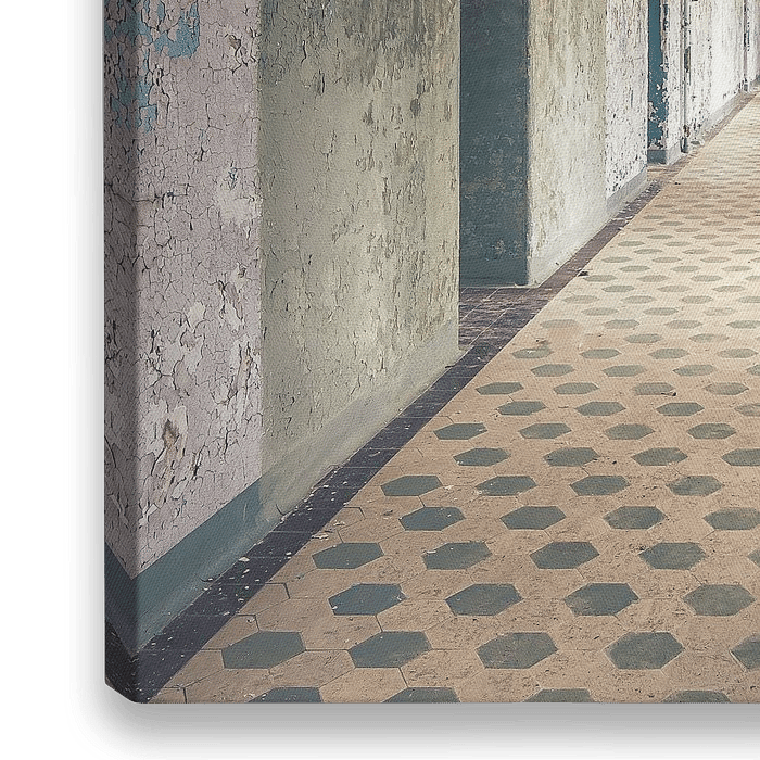 Een gang in een verlaten ziekenhuiscomplex in Oost Duitsland.