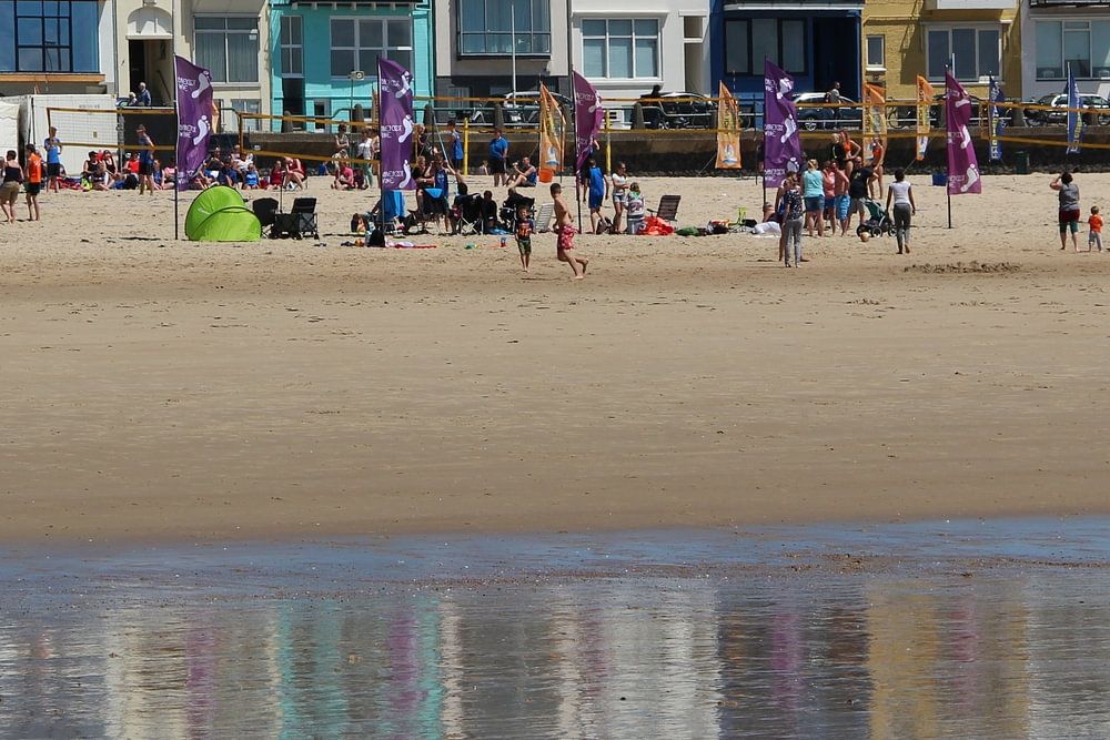 De boulevard van Vlissingen. De huizen met hun vele kleuren worden mooi vertaald in de spiegeling van het water.