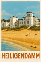 Deze reisposter toont de beroemde witte huizen van Heiligendamm tegen de achtergrond van de zee en de lucht. De scène is ontwikkeld op basis van eigen foto's en vervolgens gestileerd en voorzien van fijne texturen om de klassieke badplaatsarchitectuur en de rustige ligging aan het strand te benadrukken. De gestructureerde stadsposter…