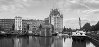 Zwart-wit panorama opname van het witte huis aan de wijnhaven in Rotterdam.