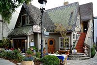 We vonden het heerlijk om te overnachten in Carmel-by-the-sea in Californië, VS. De meeste gebouwen in het centrum van de stad zouden zo uit een sprookje kunnen komen, zoals dit restaurantje met de naam 'Het witte konijn'.
