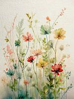 Koop dit bloemen kunstwerk Het wordt zomer! Botanische illustratie. Veldbloemen in het gras van Studio Pieternel op canvas, aluminium dibond, (ingelijste) fotoprint, behang en ArtFrame, op maat geprint in Fine-Art kwaliteit.