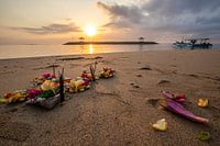 Koop dit bloemen kunstwerk Het zandstrand van Sanur op Bali met offers bij zonsopgang van Fotos by Jan Wehnert als print op canvas, aluminium dibond, (ingelijste) fotoprint, behang en ArtFrame. Voor jou op maat geprint in Fine-Art kwaliteit.