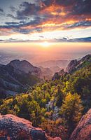 Koop dit landschapskunstwerk Het zonlicht dat tussen de bergen en bomen schijnt van MADK als print op canvas, aluminium dibond, (ingelijste) fotoprint, behang en ArtFrame. Voor jou op maat geprint in Fine-Art kwaliteit.