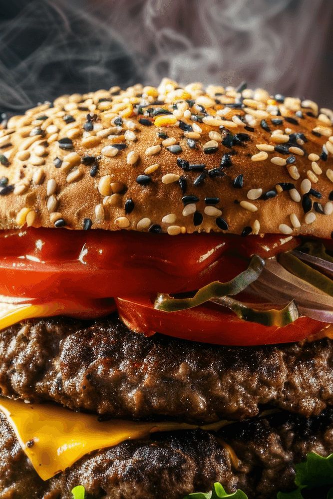 Dit levendige kunstwerk vangt de essentie van een perfect gekookte cheeseburger, compleet met dampende kaas en knapperige ingrediënten. De realistische afbeelding en intense kleuren maken het een opvallend decoratief stuk voor keukens en eetkamers. Een ideaal cadeau voor liefhebbers van kwaliteitsvoedsel en stijlvolle keukendecoratie.