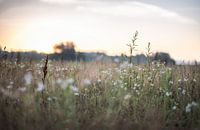 Landschap op de uiterwaarden van Heteren, Overbetuwe in Gelderland, met zicht op wildgroei langs de Rijn, met op de achtergrond de bijna opkomende zon
