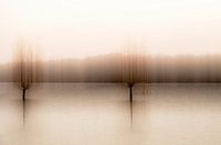 ICM, ofwel intentional camera movement opname van enkele boompjes in het hoge water van de Nederrijn. Door de beweging van de camera krijg je een abstract beeld. De foto is bewerkt in bruine tinten.