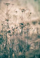 Close up van de gewone berenklauw, een plant die in het wild groeit in de uiterwaarden van de Nederrijn. De foto is bewerkt in beige tinten.