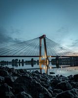 Deze foto maakte ik vlak ná de zonsondergang in het blauwe uurtje bij de Heusdense Brug in Heusden (Maas). De stenen op de voorgrond maken het helemaal af! Een lange sluitertijd van 13 seconden zorgde voor genoeg belichting en detail zonder ruis.