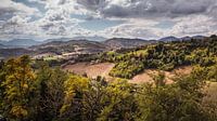 De heuvels rond Urbino in de Italiaanse provincie Marken gezien vanaf de stadsmuur.