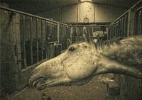 Paard, portret, manege, stal, nieuwsgierig . Mooi beeld van een nieuwsgierig paard in de stal. HDR fotografie,bewerkte foto